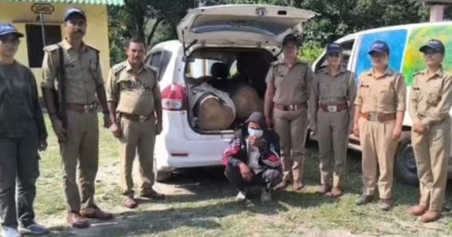 वन क्षेत्राधिकारी रूपनारायण गौतम ने बताया कि पिछले कुछ दिनों से सांपकठानी गुर्जरखत्ता क्षेत्र में लकड़ी तस्करी की शिकायतें मिल रही थीं। इस पर डिप्टी रेंजर विरेंद्र परिहार के नेतृत्व में विशेष टीम गठित की गई थी। संबंधित इलाके में गश्त भी बढ़ा दी थी। बुधवार सुबह जंगल में एक सफेद रंग की कार खड़ी नजर आई। इस पर टीम मौके पर पहुंची जिसमें एक युवक बैठा था। तलाशी में कार के अंदर से सागौन की लकड़ी के दो गिल्टे बरामद हुए जिनकी कीमत करीब 50 हजार रुपये आंकी गई है। गिरफ्तार आरोपी की पहचान आकाश सिंह निवासी सांपकठानी गुर्जर खत्ता हाल निवासी जवाहर नगर वार्ड नंबर तीन लालकुआं के रूप में हुई है। वन विभाग ने आरोपी के खिलाफ वन संरक्षण अधिनियम के तहत मुकदमा दर्ज कर उसके साथियों की तलाश शुरू कर दी है। यह पता लगाया जा रहा कि बरामद लकड़ी कहां के जंगल से काटी गई है।