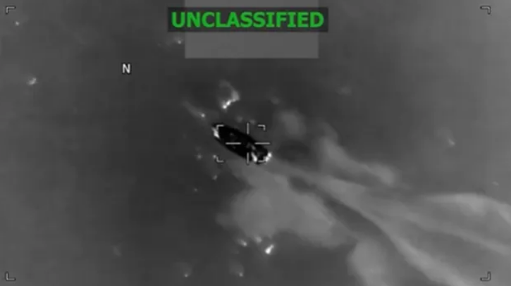 अमेरिकी दक्षिणी कमान द्वारा शेयर किए गए वीडियो में नाव को पानी में चलते हुए दिखाया गया है, जिसके बाद वह आग की लपटों में घिरकर फट जाती है। अमेरिकी दक्षिणी कमान ने कहा कि हमले में तीन लोग मारे गए।