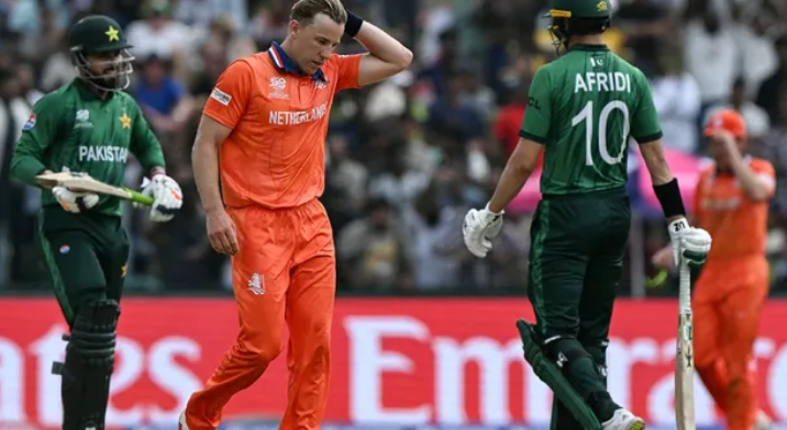 इससे पहले पाकिस्तान द्वारा बल्लेबाजी के लिए आमंत्रित नीदरलैंड्स ने सधी शुरुआत की। मगर जल्द ही उसके ओपनर्स पवेलियन लौट गए। मैक्स ओ डाउड (5) को सलमान मिर्जा ने विकेटकीपर उस्मान खान के हाथों कैच आउट कराया। फिर नवाज ने लेविट को अफरीदी के हाथों की शोभा बनाया। यह कैच सोशल मीडिया पर हिट हो गया। बाबर आजम और शाहीन ने बेहतरीन तालमेल दिखाते हुए रिले कैच पूरा किया।
