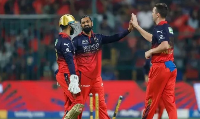 लखनऊ सुपर जायंट्स के खिलाफ बुधवार को रॉयल चैलेंजर्स बेंगलुरु के ऑलराउंडर क्रुणाल पांड्या ने चार ओवर गेंदबाजी की और 38 रन देकर दो विकेट लिए। उन्होंने लखनऊ की पारी के 10वें ओवर की पांचवीं गेंद पर मिचेल मार्श को आउट करके अपना पहला विकेट लिया। इसके बाद 12वें ओवर की दूसरी गेंद पर अब्दुल समद को खाता नहीं खोलने दिया।