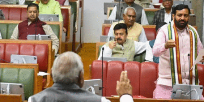 हरियाणा विधानसभा के शीतकालीन सत्र के पहले दिन की कार्यवाही शुरू हो गई है। सीएम नायब सैनी सदन में केसरिया रंग की पगड़ी पहनकर पहुंचे। सत्र 22 दिसंबर तक चलेगा। सत्र के दौरान अपराध, धान घोटाला, वोट चोरी, बीपीएल कार्ड व खिलाड़ियों की मौत के मामले पर हंगामा हो सकता है।